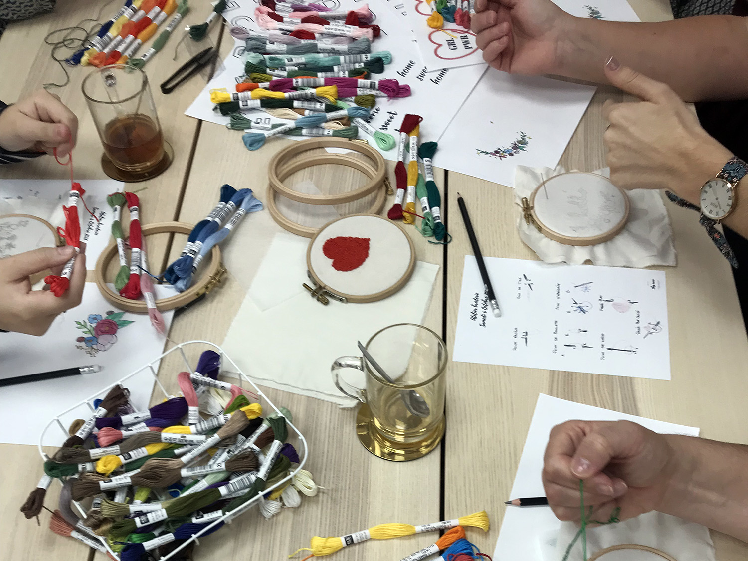 J’ai trouvé ça top ! j’adore toutes les activités manuelles. C’est vraiment bien de pouvoir venir le samedi matin de temps en temps. Je suis très occupée et je ne peux pas me permettre de suivre des activités trop régulières donc ce format me convient parfaitement. J’ai un peu galéré au début mais j’ai appris pleins de choses donc je suis contente. Je reviendrai pour terminer ma broderie.