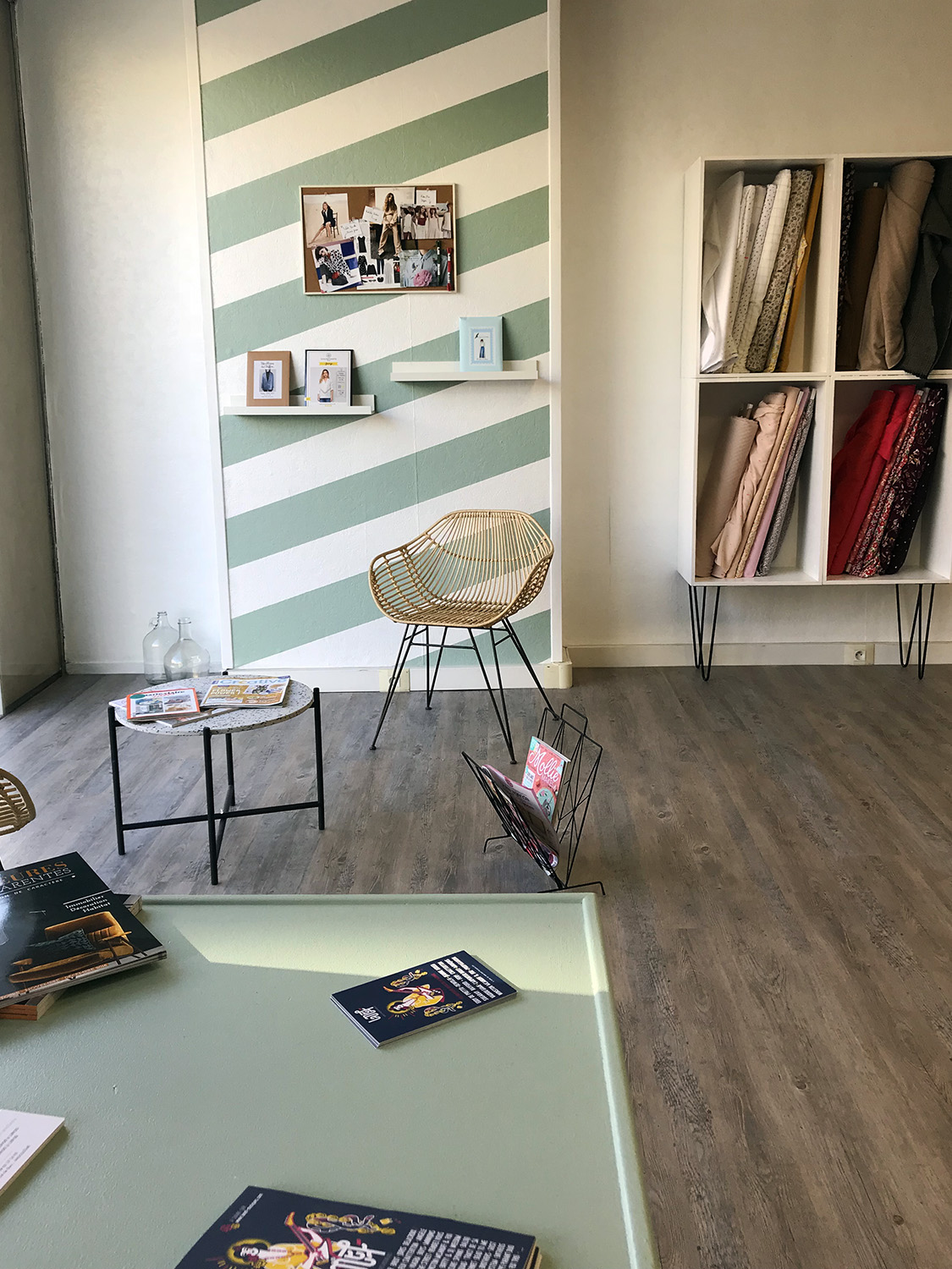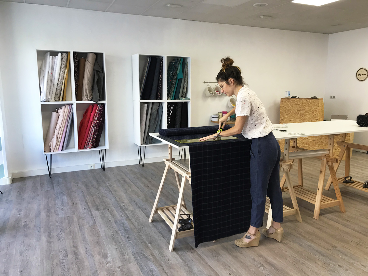 Mathilde, couturière professionnelle depuis plusieurs années, y vend des tissus, patrons, fils et autres accessoires de couture et broderie. Elle y propose également des cours et ateliers thématiques, ainsi qu’un bar à couture.